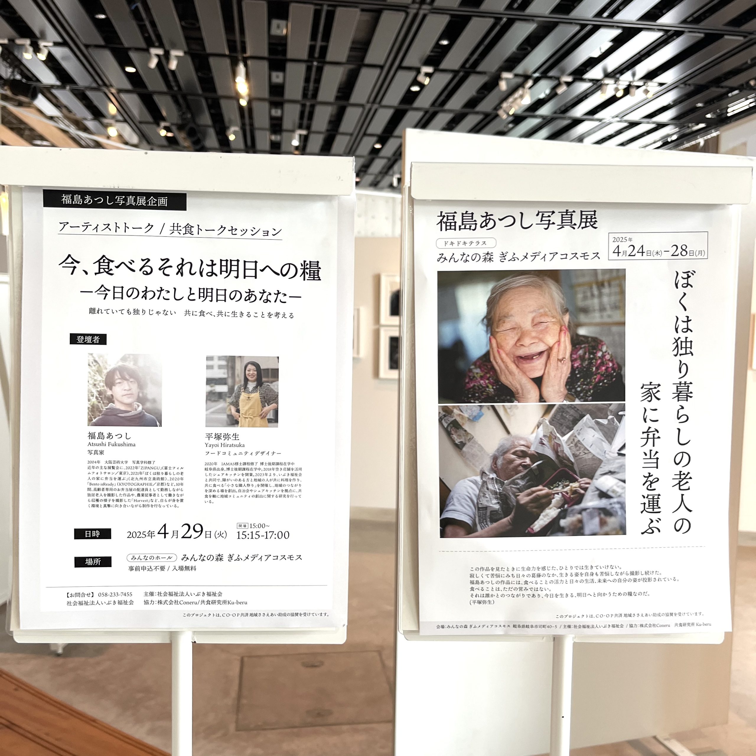 本プロジェクトは、社会福祉法人いぶき福祉会が主体となり、岐阜県の福祉・企業・地域が連携し、やさしい循環とあたらしい社会づくりを目指す取り組みです。 プログラムの一環として、『ぼくは独り暮らしの老人の家に弁当を運ぶ』の写真展開催、『今、食べる それは明日の糧』というテーマでのアーティストトーク、フードコミュニティデザイナー平塚弥生氏との共食トークセッションに登壇いたしました。